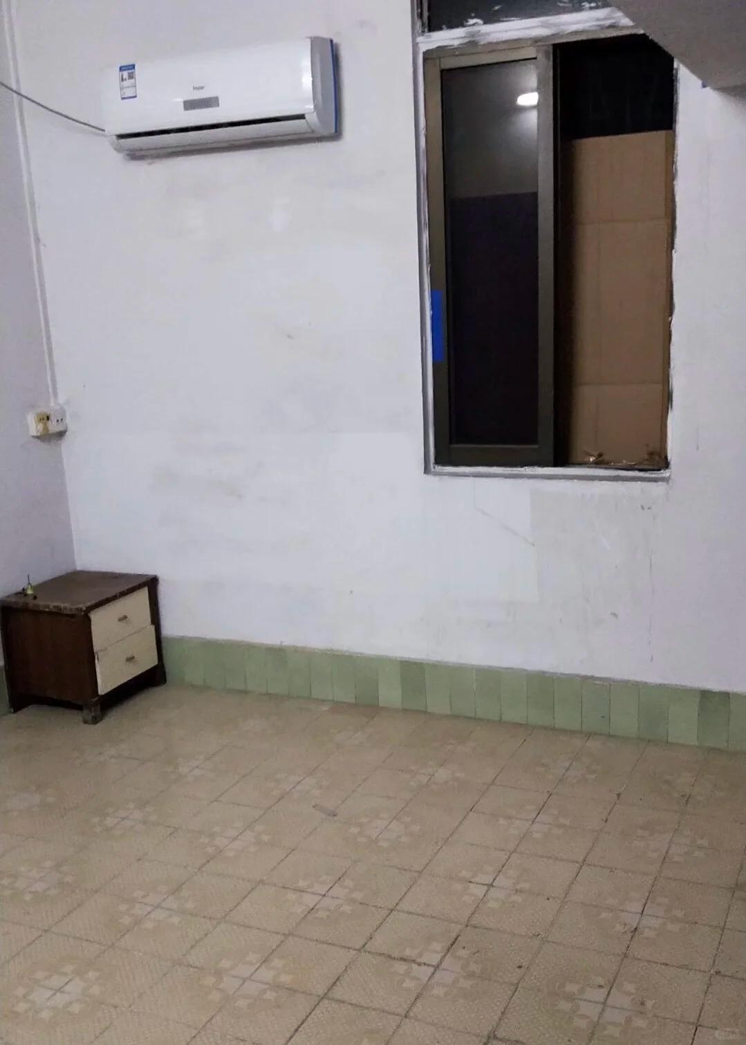 剩下的只有一个孤零零的床头柜和一个狭窄的推拉窗。